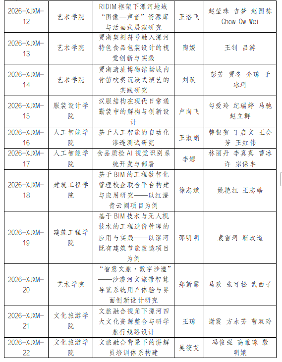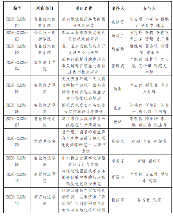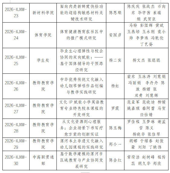 漯河职业技术学院2026年度校级项目批准立项一览表